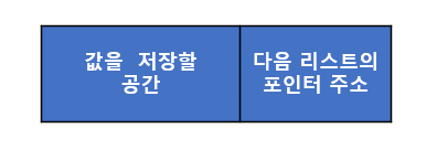 값을 저장할 공간과 다음 리스트를 가르키는 포인터를 담는 공간으로 구성되어 있다.