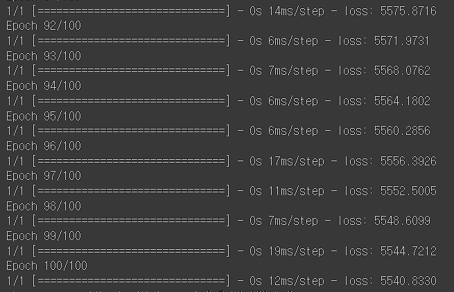 model.fit(독립, 종속, epochs=100)
